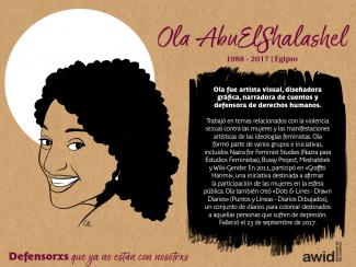 Ola AbuElShalashel 20 November 2020 Read in: Inglés Francés Español Category Derechos civiles y políticos Region África África del Norte Date of death / disappearance 2017 Por favor, vea algunas de las obras de Ola