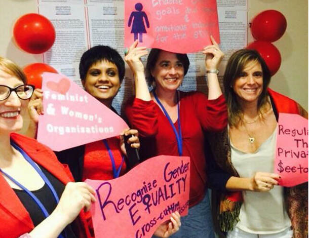 Depuis 2012, les activistes féministes et en faveur des droits des femmes ont été nombreuses à proposer leur analyse, leur expertise et leur témoignage préconisant un programme transformateur et inclusif fondé sur les droits humains pour tou-te-s et la préservation et le respect de la planète, et ont considérablement contribué[1] à ce que le genre soit pris en compte dans les ODD.