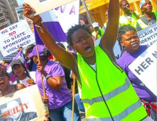 I was struck that day by the intersectionality and diversity reflected in the signs, speeches and in the crowd itself: women’s rights are human rights, Black lives matter, no one is illegal, end Islamaphobia, LGBTQI rights, disability rights, climate justice. In the small swath of the crowd that I could see, there were banners of trade unions, mainstream human rights groups, sexual and reproductive rights organizations and a few red umbrellas held by organized sex workers.